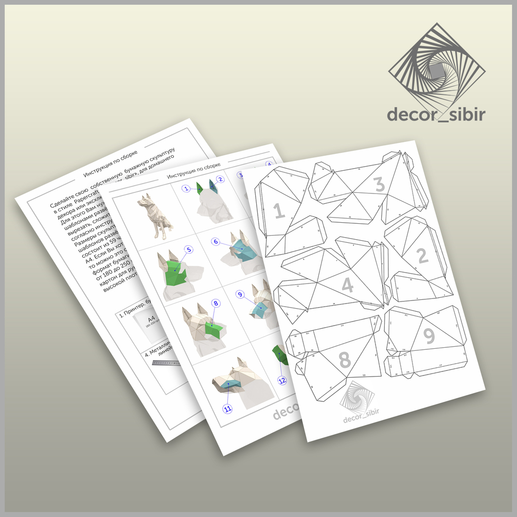 3D papercraft Sheepdog. DIY Shepherd PDF Template. Great decor for an interior or a great gift. Anyone can assemble such a sculpture by carefully studying the instructions. DIGITAL TEMPLATE. Nothing physical will be sent. Size: 750 x 570 x 270 mm when printing templates on sheets A4 format You'll get: 1.Templates, assembly instructions in PDF, 2.File "Shepherd-Pepakura" in PDO format and installation PepakuraViewerPortable application file for viewing "Shepherd-Pepakura", which is installed in two clicks. 3. Files of 3D model Sheepdog in formats 3DS, DWX, DXF, FBX You will need: 1. Thick paper or design cardboard A4 - 27 sheets 2. Printer (or local print shop). 3. Paper knife. 4. Paper cutting mat 4. Thin awl. 5. Glue. Detailed instructions in PDF. Here's a quick rundown of what you need to do: 1. Download and print the PDF template on 200-300 g / m2 paper or cardstock. 2. Cut along the contour. 3. Mark the fold lines (using a thin awl). 4. Fold the lines. 5. Having carefully studied the instructions, create your own unique sculpture!